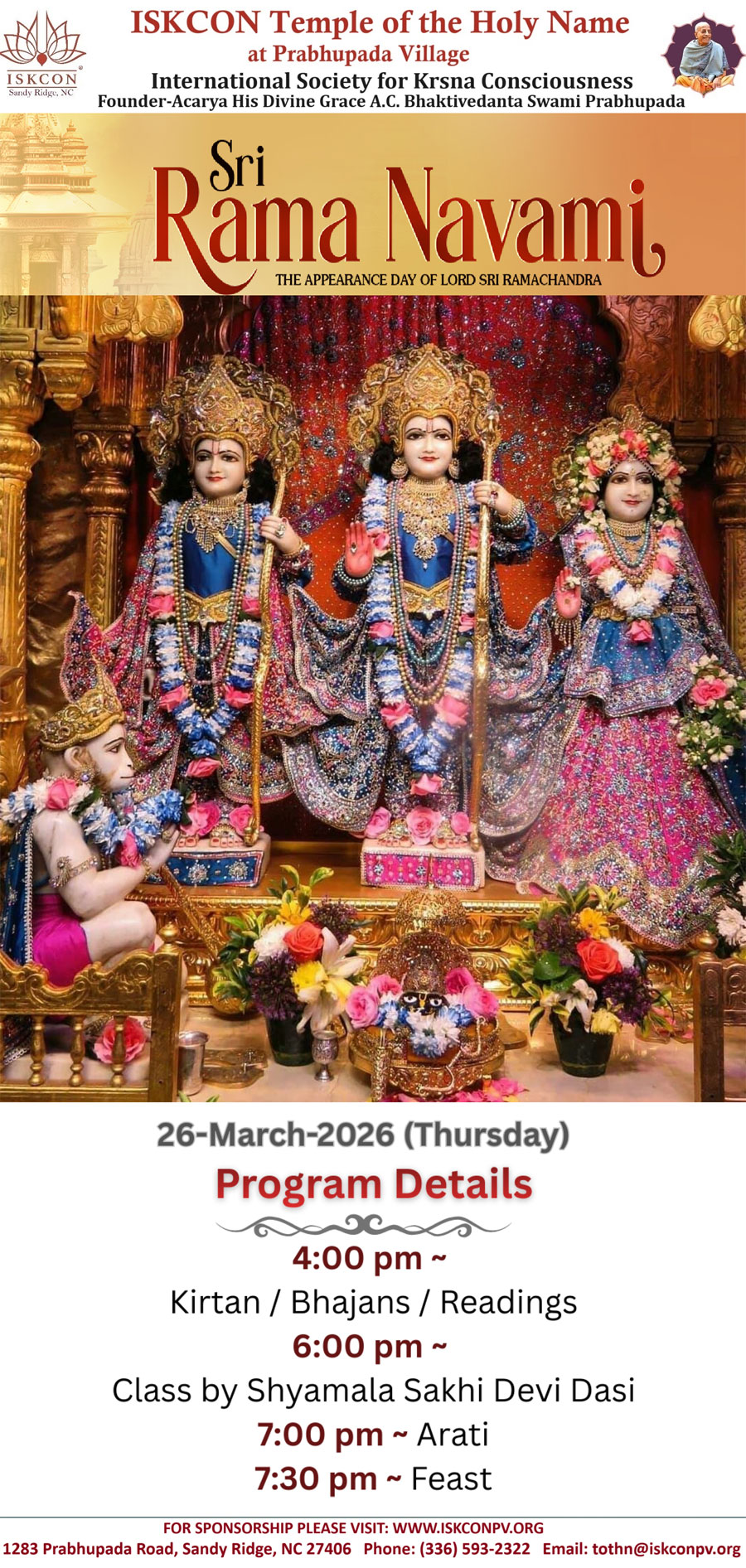 Sria Rama Navami ~ Thursday, March 26th, 2026 (click
